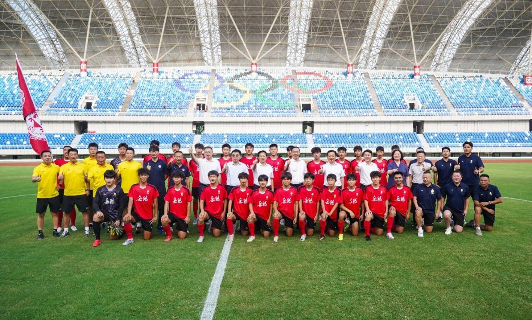 9月4日下午,2025年湖南省足球联赛(“湘超”)岳阳队授旗仪式在岳阳市奥体中心足球场举行。